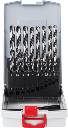 | 2 608 577 351 | 1.00; 1.50; 2.00; 2.50; 3.00; 3.50; 4.00; 4.50; 5.00; 5.50; 6.00; 6.50; 7.00; 7.50; 8.00; 8.50; 9.00; 9.50; 10.00 | 12; 18; 24; 30; 33; 39; 43; 47; 52; 57; 57; 63; 69; 69; 75; 75; 81; 81; 87 | 34; 40; 49; 57; 61; 70; 75; 80; 86; 93; 93; 101; 109; 109; 117; 117; 125; 125; 133 | HSS 트위스트 드릴 비트 PointTeQ 19피스 ProBox 포함 직경(mm): 1; 1,5; 2; 2,5; 3; 3,5; 4; 4,5; 5; 5,5; 6; 6,5; 7; 7,5; 8; 8,5; 9; 9,5; 10 포함 작동 길이(mm): 12; 18; 24; 30; 33; 39; 43; 47; 52; 57; 57; 63; 69; 69; 75; 75; 81; 81; 87 | 19 개 | 대리점 찾기 |
