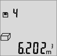 좌측 상단에 메모리값의 번호가 표시되고, 그 아래에는 해당 측정 기능이 그리고 하단에는 해당 메모리값이 표시됩니다. 메모리에 저장된 값이 없으면, 디스플레이 하단에 "0.000" 및 상단에 "0"이 표시됩니다.