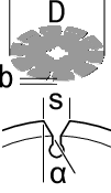 | D | b | s | α | [min-1] | [m/s] |